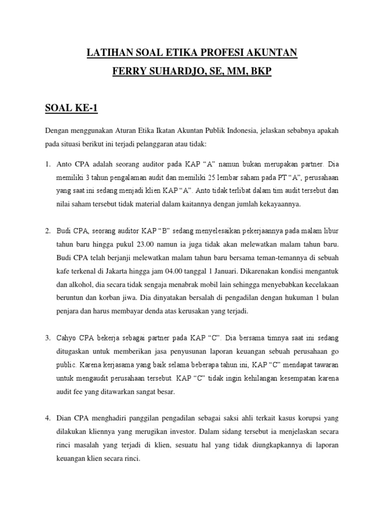 Soal Dan Jawaban Etika Profesi Akuntansi - Soal Dan Jawaban Tentang Etika Profesi Akuntansi Kisi Kisi Soal Etika Profesi Jawabanku Id 60 Contoh Soal Etika Profesi Kelas 10 Jawaban Essay Pilgan 3 Rumahbelajaryoga / We did not find results for:. Maybe you would like to learn more about one of these? Check spelling or type a new query. Soal dan jawaban etika profesi akuntansi. We did not find results for: