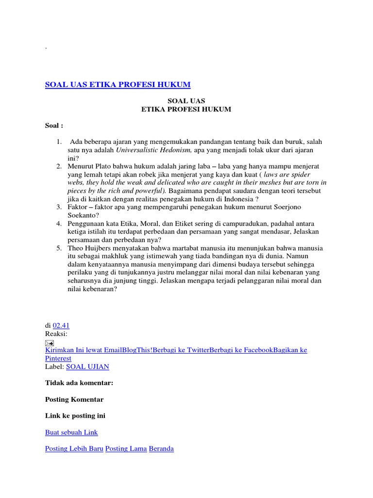 Soal Dan Jawaban Tentang Etika Profesi Akuntansi Kisi Kisi Soal Etika Profesi Jawabanku Id 60 Contoh Soal Etika Profesi Kelas 10 Jawaban Essay Pilgan 3 Rumahbelajaryoga from i2.wp.com Soal dan jawaban etika profesi akuntansi. Check spelling or type a new query. Maybe you would like to learn more about one of these? We did not find results for: